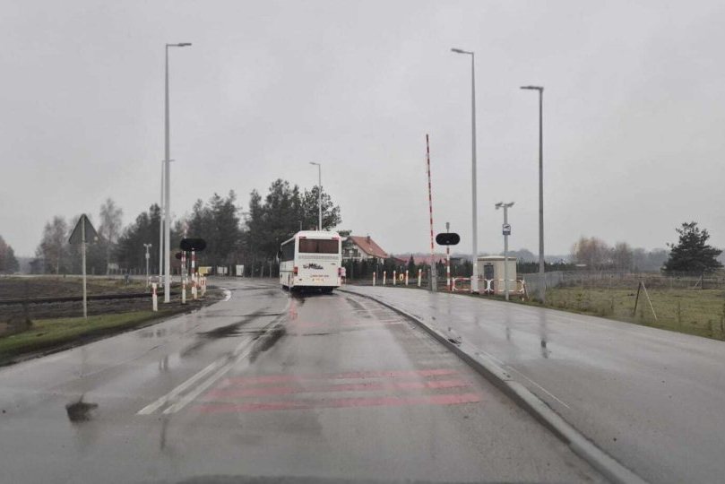 Policja to nie może dać rady na przejeździe drogowo - kolejowym na drodze powiatowej przed miejscowością Dybowo gm. Pasym.