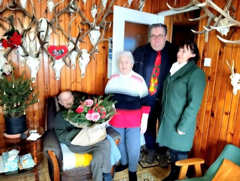 Z tej okazji Dostojnego Jubilata odwiedzili wójt gminy Jedwabno Sławomir Ambroziak, przewodnicząca Rady Gminy Elżbieta Brzóska oraz kierownik Urzędu Stanu Cywilnego Elżbieta Katarzyna Koperska, składając serdeczne życzenia, gratulacje i wyrazy szacunku. Wzruszony pan Antoni dziękował za pamięć, obecność i ciepłe słowa.