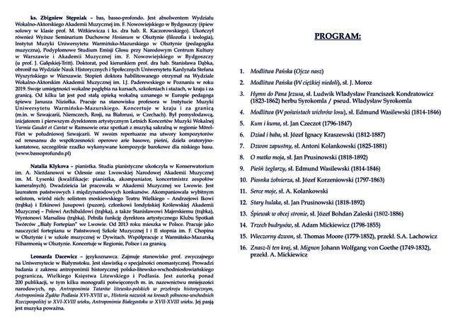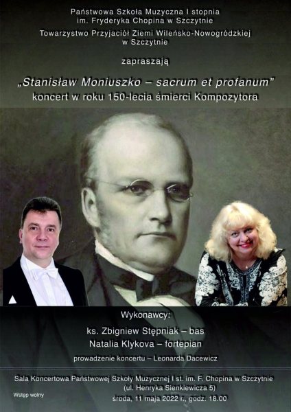 Towarzystwo Przyjaciół Ziemi Wileńsko-Nowogródzkiej oraz Państwowa Szkoła Muzyczna I stopnia im. Fryderyka Chopina w Szczytnie zapraszają koncert „Stanisław Moniuszko - sacrum et profanum”, który odbędzie się 11 maja 2022 r. o godzinie 18:00 w Państwowej Szkole Muzycznej w Szczytnie, przy ulicy H. Sienkiewicza 5. Wstęp na koncert jest darmowy.