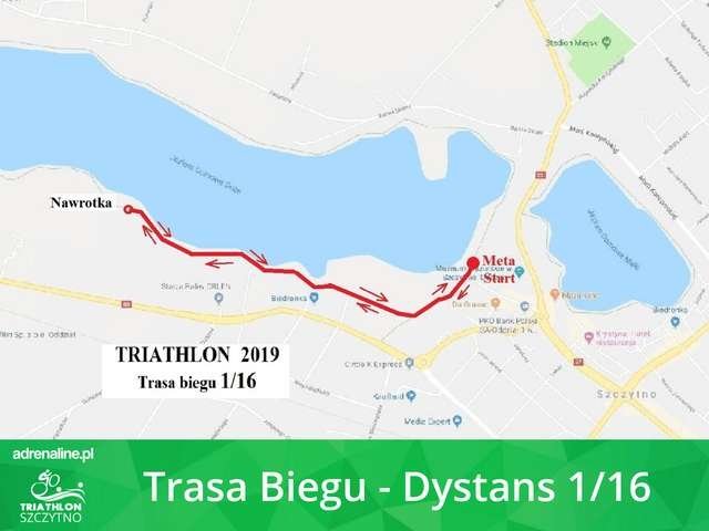 dla dystansu 1/16 - 1,1 km wzdłuż jeziora i powrót tą samą trasą