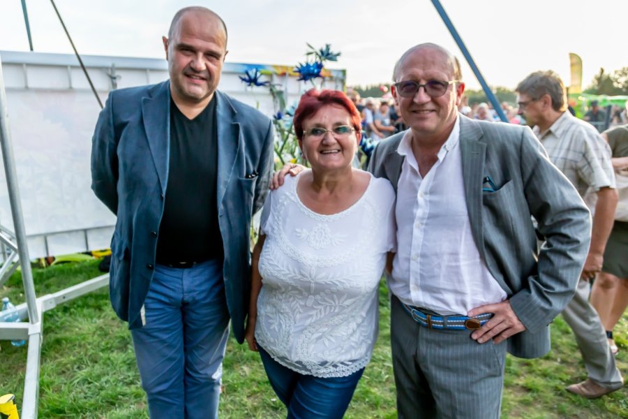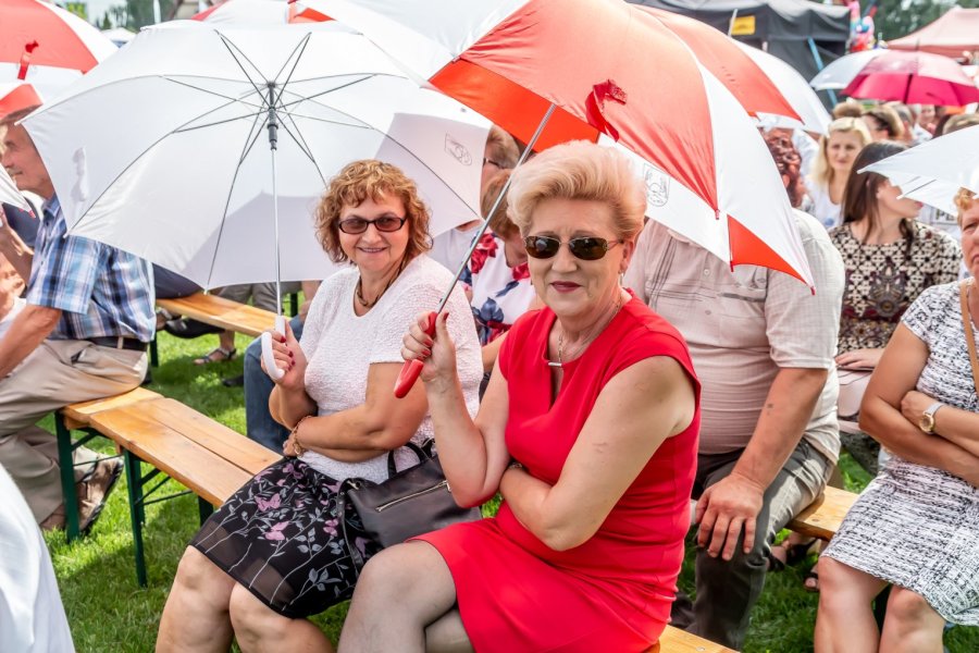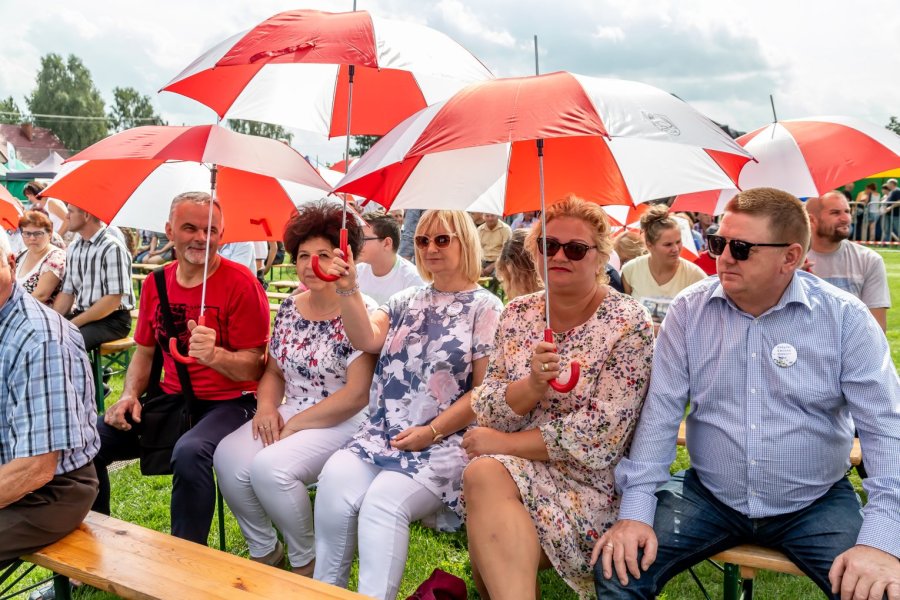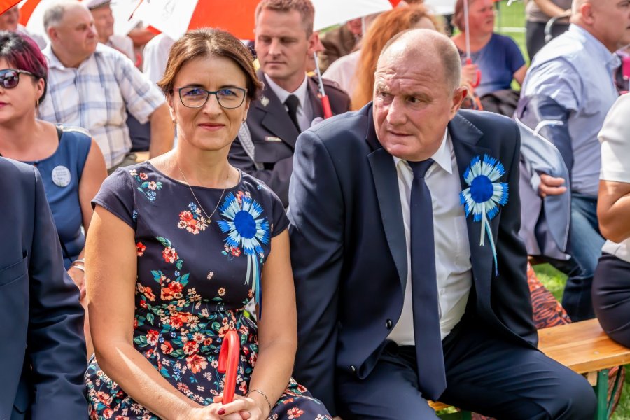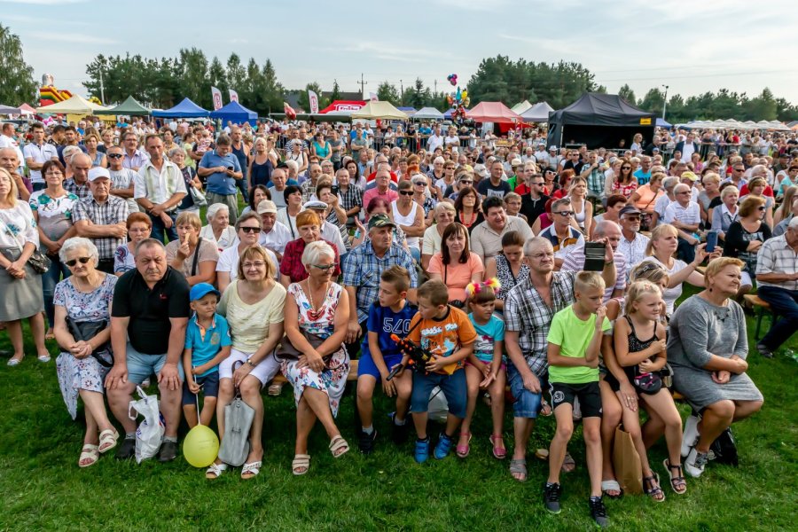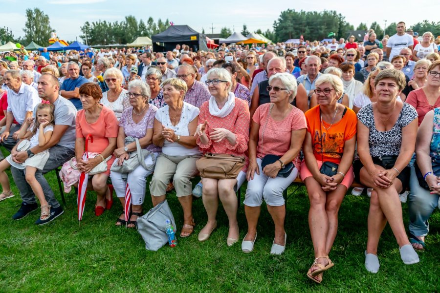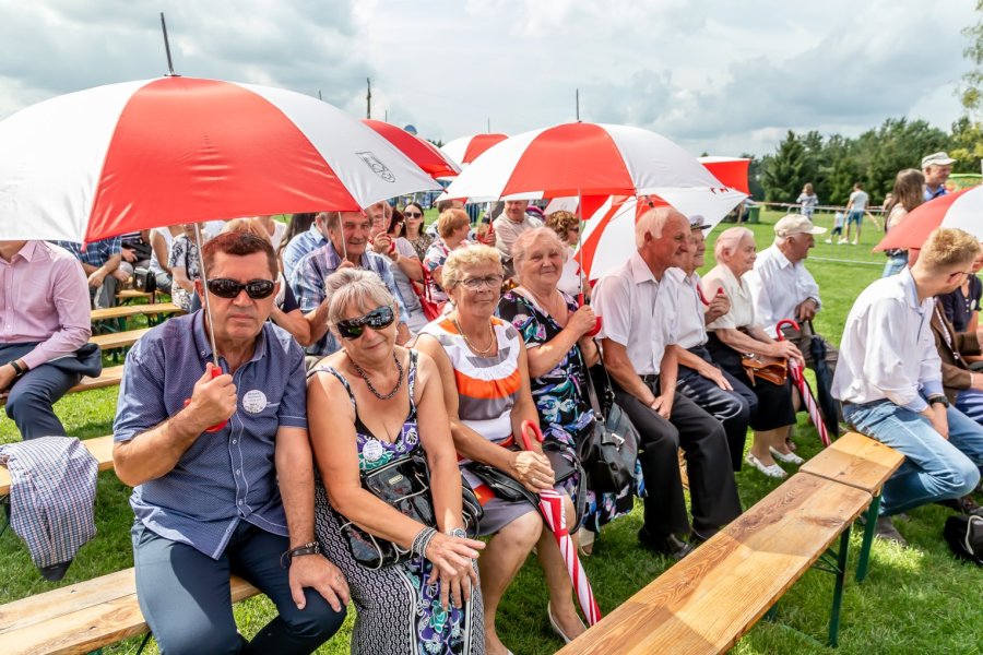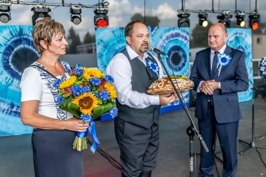 Przy tej liczbie uczestników wydarzenia trudno orzec, czy każdemu przypadł w udziale chociażby okruch tradycyjnego, dożynkowego bochna chleba, który wójtowi Sławomirowi Wojciechowskiemu wręczali starostowie dożynek: Elżbieta Kobus z Wawroch oraz Tadeusz Piórkowski z Sasku Małego. Warto podkreślić, że oboje starostowie to nie tylko wiodący rolnicy, ale również przedsiębiorcy od lat promujący gminę prowadzoną przez siebie działalnością agroturystyczną.