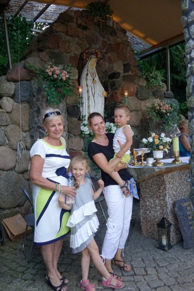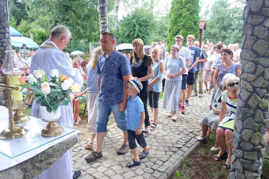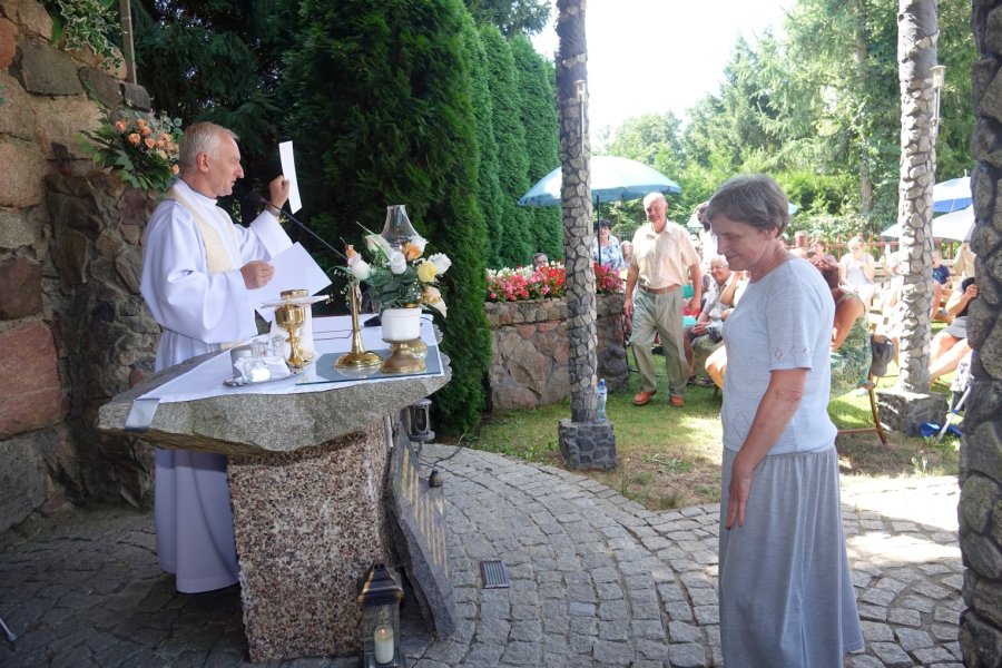 - Inicjatorem budowy groty był ks. Robert Dziewiatowski, ówczesny proboszcz parafii św. Stanisława Kostki w Szczytnie. Grunt pod grotę ofiarowali państwo Jadwiga i Józef Pyciowie. W budowę prowadzoną przez ks. Roberta zaangażowali się niemal wszyscy mieszkańcy z okolicy. I dokładnie 2 sierpnia 1998 roku odprawiona została tu pierwsza msza – przytaczała historię Dorota Sobieraj, która prowadzi kronikę groty od samego początku jej istnienia. – Od tamtego czasu miejsce to odwiedziło tysiące ludzi z całego świata. Ich wrażenia to nie tylko wspomnienia z wypoczynku na Mazurach. Z groty zabrali przede wszystkim wartość duchową i umocnienie w wierze.