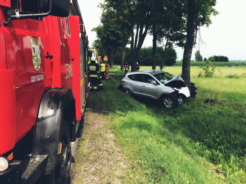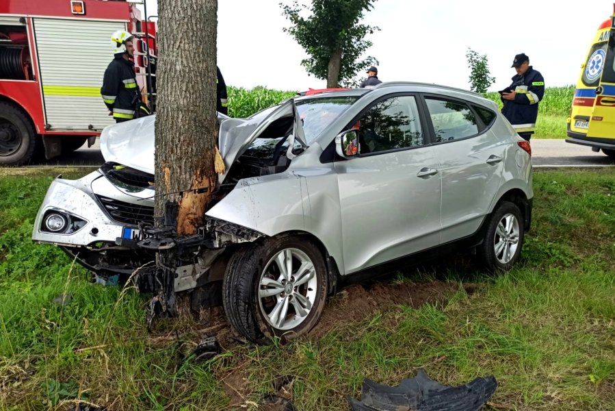 W czwartek, 15 lipca w Dąbrowach w gminie Rozogi doszło do poważnie wyglądającego zdarzenia drogowego. Z ustaleń policjantów wynika, że 54-letni kierowca Hyundaia jadąc w kierunku Myszyńca zjechał nagle na przeciwny pas ruchu i zatrzymał się na przydrożnym drzewie.