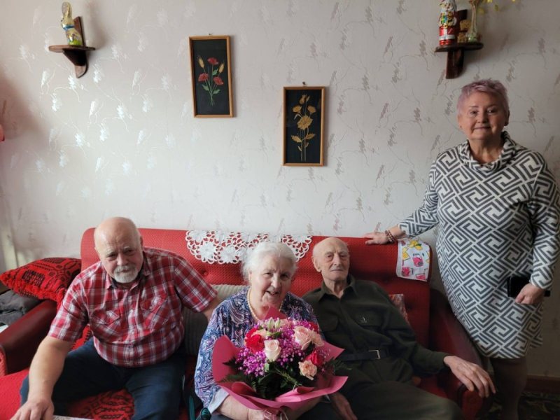Z wizytą do Jubilatów przyjechali wójt gminy Jedwabno Sławomir Ambroziak, przewodnicząca Rady Gminy Elżbieta Brzóska oraz kierownik Urzędu Stanu Cywilnego Elżbieta Katarzyna Koperska.