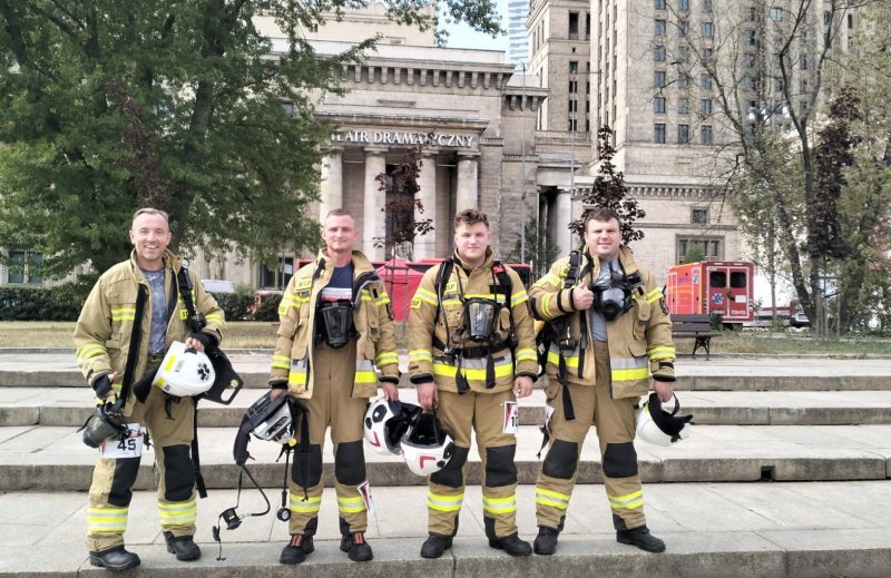 30 pięter po 800 schodach Pałacu Kultury i Nauki w Warszawie, w pełnym umundurowaniu i w maskach chroniących drogi oddechowe. Biegiem, bo wygrają najszybsi - takiego wyzwania podjęło się czworo druhów z OSP Grom, którzy w sobotę stanęli na starcie VII Mistrzostw Polski Strażaków w Biegu po Schodach – Wieżowiec 2025. “Bieg” ukończyli, medale dostali, ale łatwo nie było.