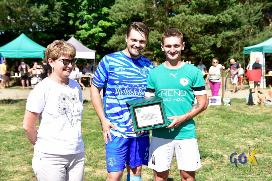 Podczas charytatywnego pikniku na gminnym stadionie w Dźwierzutach nie zabrakło atrakcji. Na początek na boisko wybiegli najmłodsi zawodnicy z UKS Dźwierzuty. Cóż to był za mecz! Takie zaangażowania może pozazdrościć niejeden dorosły zawodnik. Następnie Drużyna Wielkich Serc na czele z posłem Michałem Wypijem zmierzyła się z drużyną Przyjaciół Pani Wójt. Nie wynik był tu najważniejszy, ale w pełni zasłużona wygrana (w rzutach karnych) była po stronie DWS. Na koniec rozgrywek sportowych TS Perkun Orzyny zmierzył się z Kibicami Perkuna i z Perkunem Oldboy.