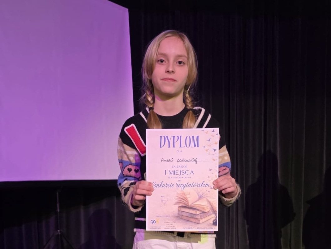 W piątek, 20 marca, w Gminnym Ośrodku Kultury w Dźwierzutach odbył się powiatowy konkurs recytatorski „Spotkania z poezją”. Na scenie pojawili się uczniowie z różnych szkół. Każdy miał kilka minut i jeden cel – przekonać jury słowem. Wśród uczestników znalazła się Amelia Łańcucka ze Szkoły Podstawowej nr 6 w Szczytnie. Wystąpiła, zaprezentowała utwór i zwróciła uwagę jurorów. Decyzja była jednoznaczna – pierwsze miejsce.