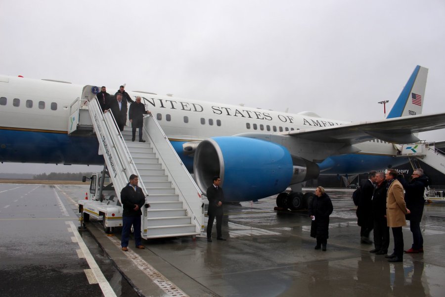 W środę, 13 lutego tuż po godzinie 10.00 na lotnisku w Szymanach lądował Boeing 757-200 Sił Powietrznych Stanów Zjednoczonych. Przywiózł sekretarza stanu USA. Mike Pompeo odwiedził amerykańskich żołnierzy w Bemowie Piskim i po 15.00. odleciał do Warszawy.