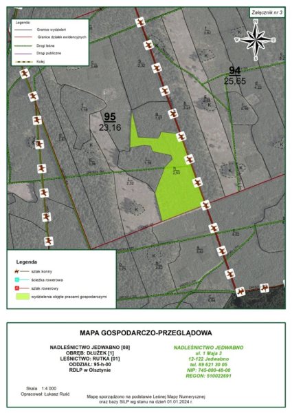Miejsca obecnie prowadzonych prac gospodarczych zostały zaznaczone na niżej załączonych mapach gospodarczo-przeglądowych.