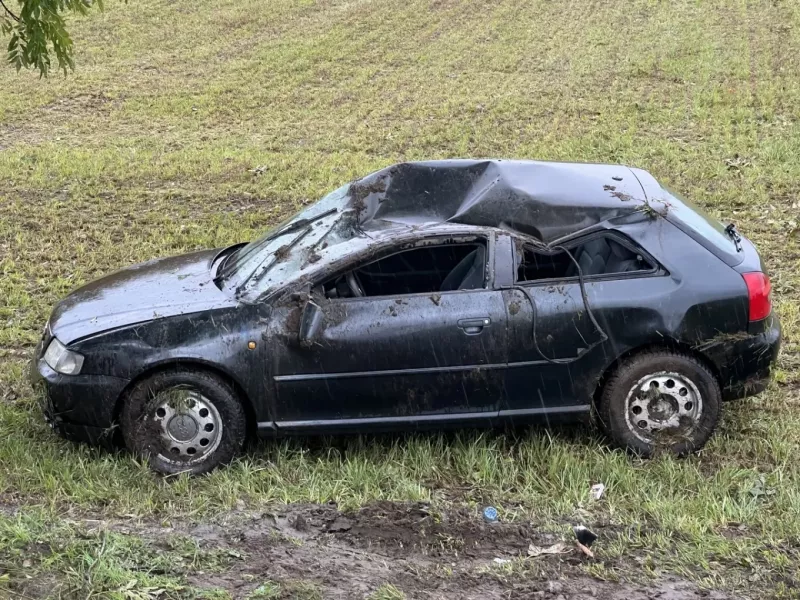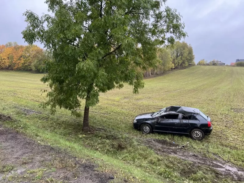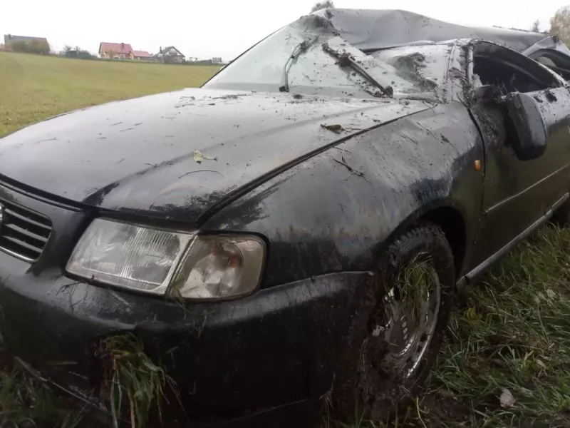 Fatalne warunki na drogach. Przekonał się o tym 20-letni kierowca audi, którego auto dachowało na wysokości Lipowej Góry Zachodniej, na trasie Szczytno – Linowo.
