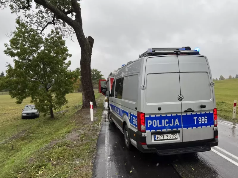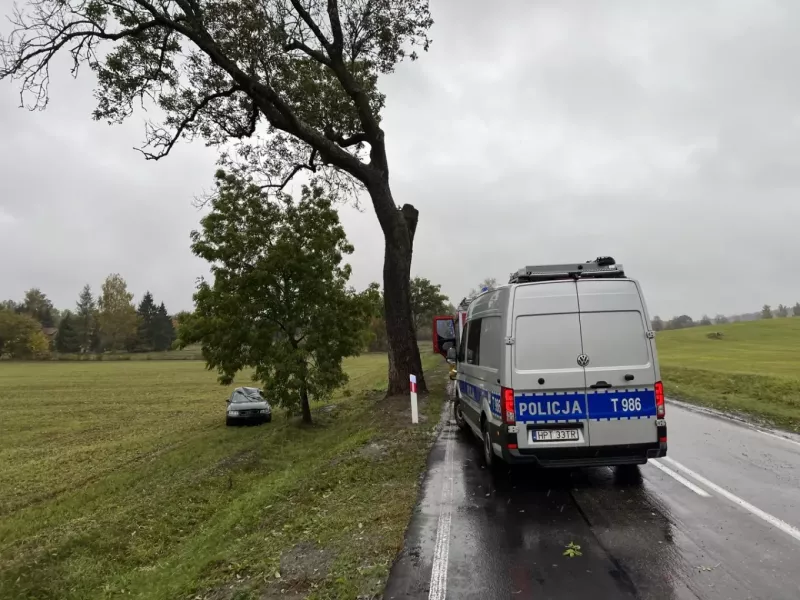 20-latek miał dużo szczęścia, bo jego auto dosłownie minęło się o centymetry ze stojącym przy drodze drzewem.