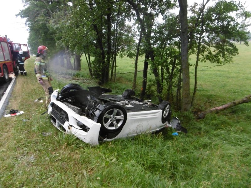 27-letni mieszkaniec gminy Rozogi nie potrzebował pomocy medycznej, w chwili zdarzenia był trzeźwy. Samochód jednak dachował i został doszczętnie zniszczony. Straty oszacowano na około 100 tys. zł.