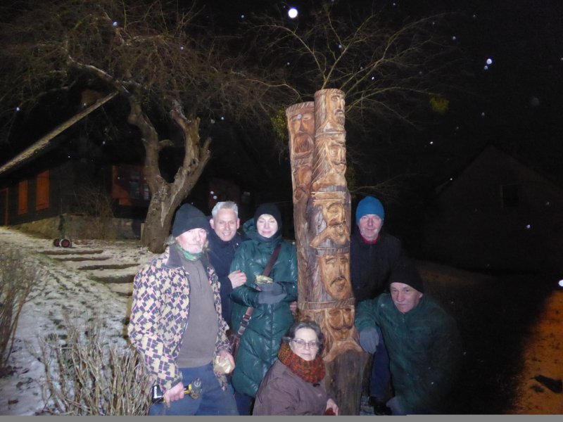 Najwartościowszą część pnia pokryją rzeźby przedstawiające twarze polskich bartników, którzy na mocy przywileju, wydanego 24 listopada 1360 roku przez szpitalnika Ortolfa z Trewiru, uzyskali prawo osiedlenia się na północnych brzegach jezior Domowego Dużego i Małego - dając tym samym początek osadzie Bartna Strona. Ambitny plan zakładał, że zdążymy na 660–lecie powstania Bartnej Strony. Nie udało się z wielu powodów, ale ostatecznie rzeźba powstała.