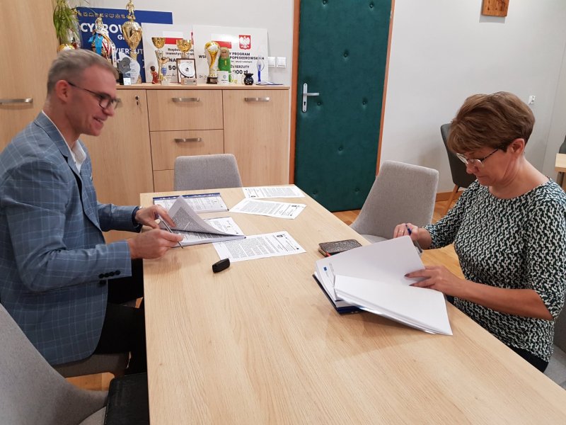 Dopiero czwarty przetarg wyłonił wykonawcę zadania pn. „Termomodernizacja budynku Gminnego Ośrodka Kultury w Dźwierzutach". Wójt Gminy Dźwierzuty Pani Marianna Bogusława Szydlik podpisała w poniedziałek, 15 listopada, umowę z Panem Michałem Zarembskim przedstawicielem firmy MEZARIST Michał Zarembski. Prace budowlane na obiekcie mają zakończyć się do 15 marca 2022 roku. Zgodnie z umową kwota wynagrodzenia Wykonawcy wynosi 763 735,61 zł brutto.