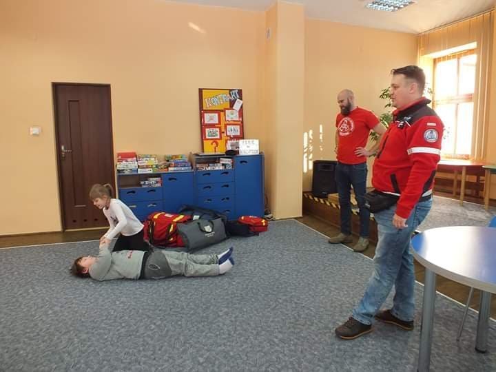 Szczycieńska placówka jest organizatorem ferii zimowych i w tym roku postanowiła zaprosić do siebie ratowników. Do udziału w zajęciach dotyczących pierwszej pomocy zaproszono dzieci, ale na spotkanie przybyli także dorośli. Wszyscy chętnie uczestniczyli w ćwiczeniach z udzielania pierwszej pomocy przedmedycznej.