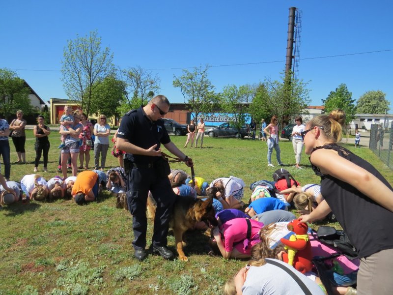 Dzieci edukowała policyjna para sierż. Izabela Głowacka z Wydziału Prewencji oraz mł. asp. Rafał Jaworski przewodnik psa policyjnego wraz ze swoim podopiecznym.
