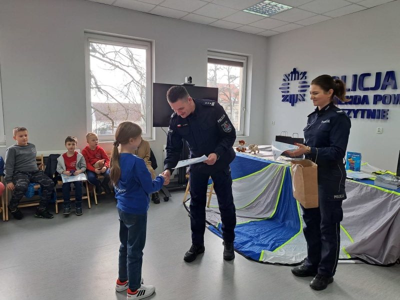Na zakończenie spotkania, Komendant Powiatowy Policji w Szczytnie, insp. Radosław Drach, wręczył uczniom dyplomy ukończenia projektu profilaktycznego, gratulując im wiedzy i świadomości na temat potencjalnych zagrożeń w życiu codziennym.