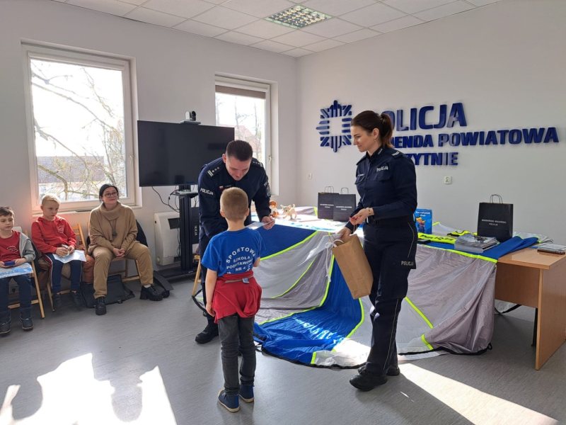 W czwartek uczniowie z klasy 2a ze Sportowej Szkoły Podstawowej nr 4 im. Polskich Olimpijczyków w Szczytnie wraz z nauczycielkami gościli w Komendzie Powiatowej Policji w Szczytnie. Była to forma zakończenia wojewódzkiego projektu "Profilaktyka Smyka", skierowanego na rzecz bezpieczeństwa dzieci.