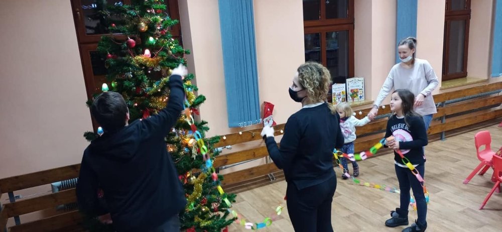 Dzieci wysłuchały świątecznego opowiadania i wykonały kolorowy łańcuch na choinkę.