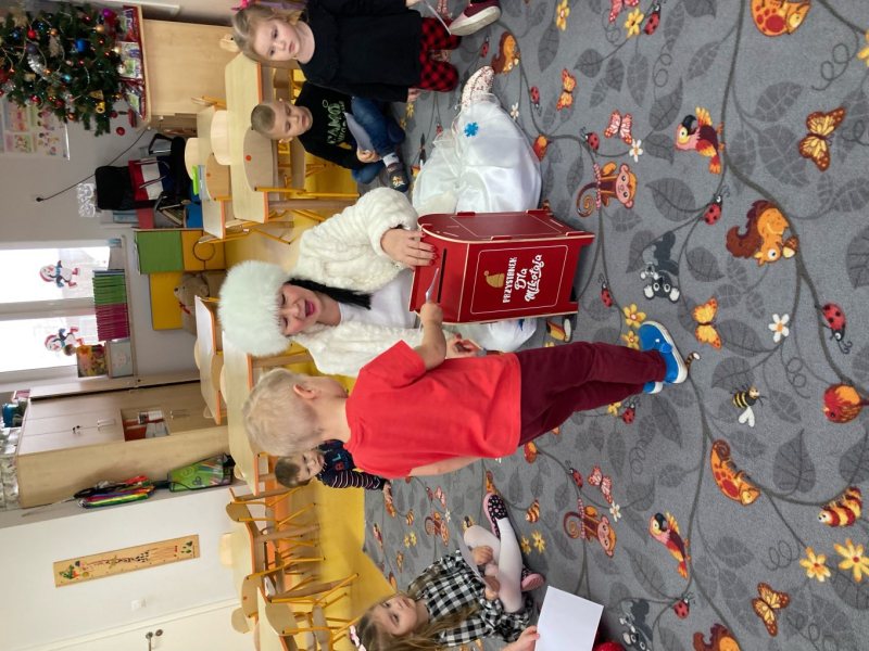 Każdy kto nie ma pomysłu jak to zrobić, może skorzystać z gotowego szablonu, który dostępny jest w bibliotece. Listy można wrzucać od 6 grudnia do specjalnie przygotowanej skrzynki pocztowej. Najmłodszych czytelników, naszych przedszkolaków odwiedziła Śnieżynka. Pomaga Mikołajowi i zbiera listy do czerwonej skrzynki. Każdy mógł wrzucić swój list.