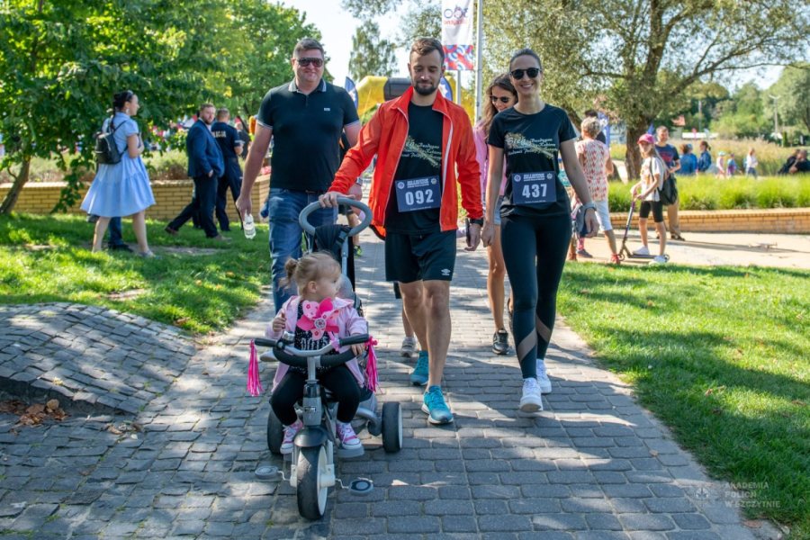 „Nie możemy zmienić całego świata, ale zawsze możemy zmienić czyjś świat” – słowa Janusza Korczaka, które stały się mottem tegorocznej 5. edycji Biegu na rzecz Fundacji Pomocy Wdowom i Sierotom po Poległych Policjantach organizowanego przez Akademię Policji w Szczytnie zainspirowały do działania wiele osób. Do Biegu o Buzdygan Komendanta-Rektora Akademii Policji w Szczytnie zarejestrowało się w systemie elektronicznych zapisów i wpłaciło „cegiełkę” aż 1219 zawodników. Do tej liczby należy doliczyć również tych, którzy zapisali się do Biegu głównego w dniu imprezy – 3 września 2023 r. na plaży miejskiej w Szczytnie. Tego dnia od wczesnych godzin porannych wydawano pakiety startowe dla zawodników, którzy już niebawem mieli wyruszyć w blisko 5 km trasę wiodącą malowniczą ścieżką wokół jeziora Domowego Dużego.