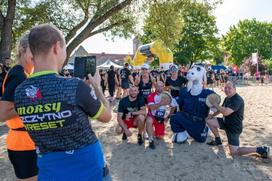 Podczas przedsięwzięcia nie zabrakło również wielu atrakcji przygotowanych przez organizatora i partnerów wydarzenia. Na stoiskach promocyjnych Akademii Policji, Komendy Powiatowej Policji w Szczytnie, Urzędu Miejskiego w Szczytnie czy Banku Spółdzielczego w Szczytnie czekały gry i zabawy dla najmłodszych. Dzięki uprzejmości ludzi o wielkich sercach, oprócz pojazdów policyjnych, można było również obejrzeć z bliska oryginalne amerykańskie radiowozy – Ford Crown Victoria Police Interceptor. Na dzieci czekały również policyjne maskotki, a po wyczerpujących zabawach zorganizowanych przez słuchaczy szkolenia zawodowego oficerskiego, wata cukrowa oraz popcorn. Warto wspomnieć, że dzięki ofiarodawcom, których nie sposób wszystkich wymienić, możliwy był zakup koszulek i medali dla zawodników, nagród dla zwycięzców, a także zorganizowanie posiłku regeneracyjnego. – serdecznie dziękujemy!