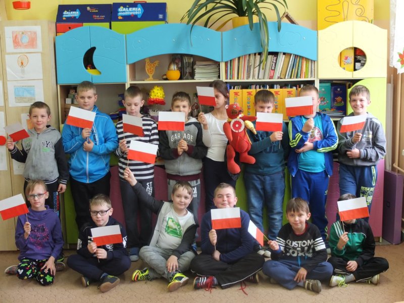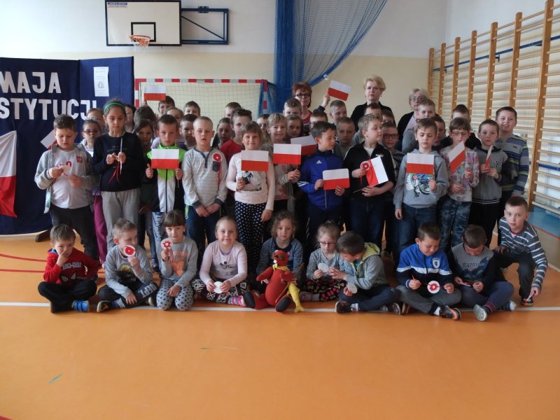 Ponieważ wielkimi krokami zbliżało się święto majowe, zaprosiliśmy gościa do klasy III i poprosiliśmy, aby wspólnie wykonał kotyliony i flagi biało-czerwone. Byliśmy zdziwieni, że wiedział co oznaczają kolory naszej flagi. Potem z dumą uczestniczył w uroczystej akademii z okazji Święta Konstytucji.