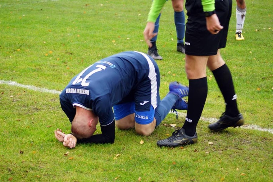 Nie minęło dziesięć minut od pierwszej bramki, a gospodarze mogli się cieszyć już z drugiego trafienia. W 29. minucie pojawiła się szansa na zdobycie kontaktowego gola. Lewym skrzydłem popędził Kamil Kępka, a piłka po jego dośrodkowaniu trafiła w rękę obrońcy. Sędzia bez wahania wskazał na jedenasty metr. Do piłki podszedł Patryk Malanowski, niestety, trafił tylko w słupek. Kilka minut później w końcu bramkę zdobył zawodnik Błękitnych. Niestety, było to trafienie samobójcze… Szymon Chrzanowski chciał przeciąć podanie przed polem karnym, jednak zrobił to na tyle niefortunnie, że zmylił i pokonał własnego bramkarza. Do przerwy wynik nie uległ już zmianie.