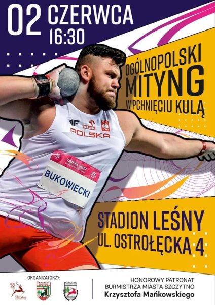 Do Szczytna ponownie zjedzie polska czołówka kulomiotów z Konradem Bukowieckim na czele. W środę, 2 czerwca odbędzie się w naszym mieście Ogólnopolski Mityng w Pchnięciu Kulą. Zawody odbędą się na Stadionie Leśnym przy ulicy Ostrołęckiej w Szczytnie. Początek godz. 16:30.