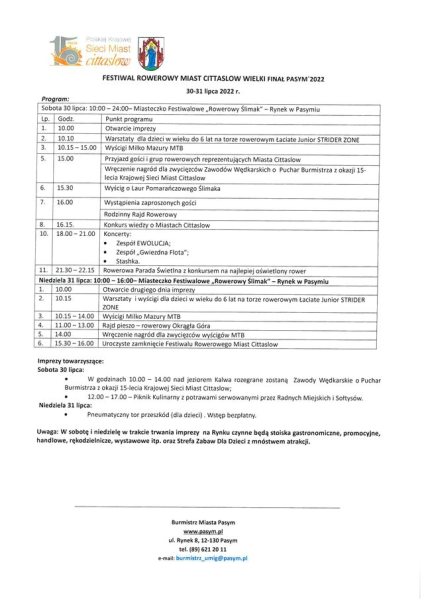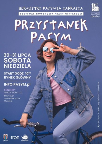 Sobota i Niedziela, 30-31 lipca, Rynek Miejski w Pasymiu - Przystanek Pasym to kolejna edycja rowerowego szaleństwa. Dodatkowe atrakcje: Sobota 12.00-17.00 Piknik kulinarny Radnych Miejskich i Sołtysów. Godz. 18.00-21.00 Koncerty zespołów: EWOLUCJA, GWIEZDNA FLOTA, STASZKA.