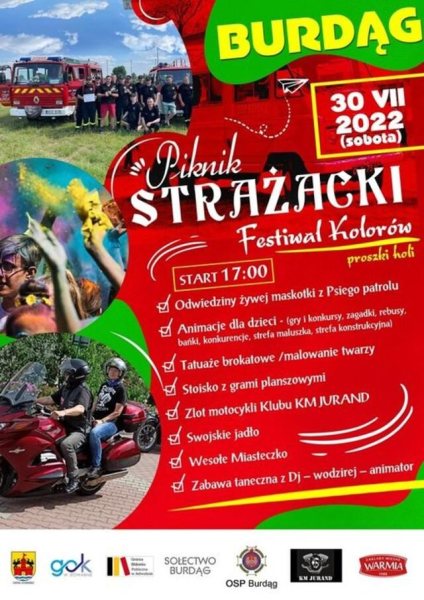 Sobota, 30 lipca, miejscowość Burdąg, godz. 17:00 - Piknik Strażacki.