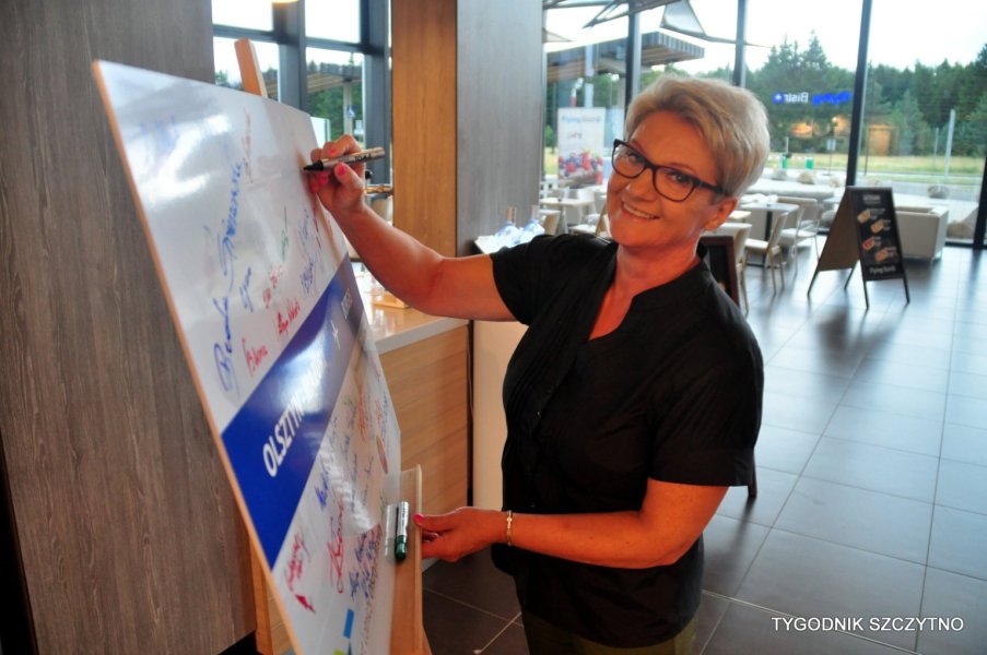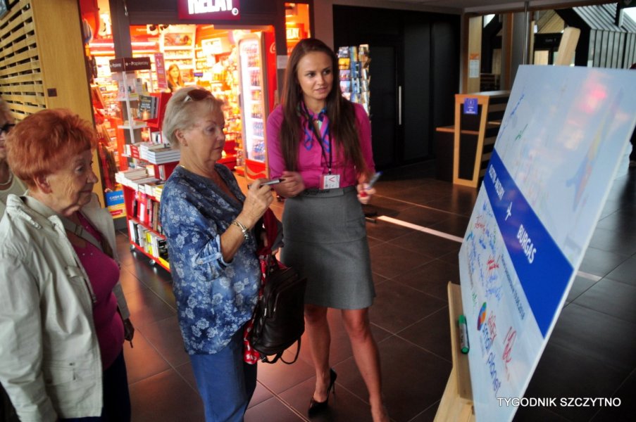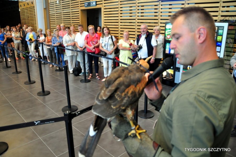 Na pasażerów inauguracyjnego lotu w terminalu czekało kilka atrakcji, m.in. spotkanie z lotniskowym sokolnikiem oraz... zbieranie autografów. Tym razem to właśnie pasażerowie mogli wczuć się w role celebrytów i złożyć swoje podpisy na specjalnej, pamiątkowej tablicy.