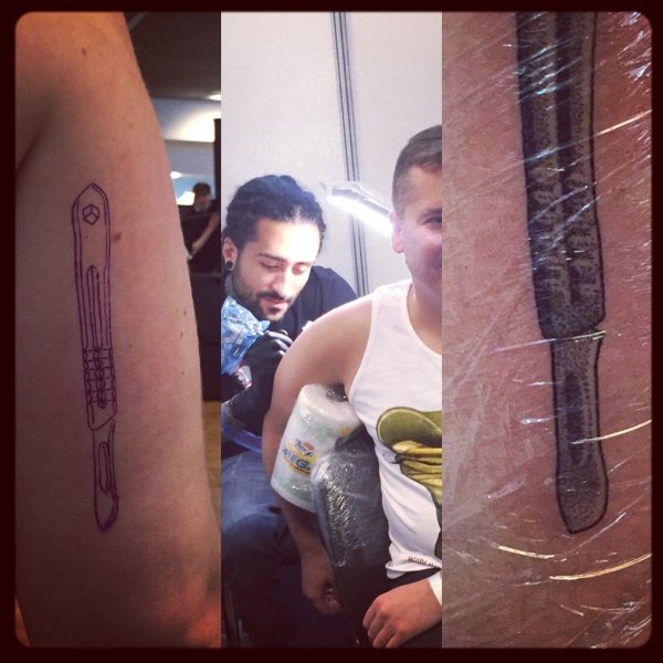 Dokładnie w październiku 2016 roku, na ramieniu wytatuowano mi skalpel, no bo w końcu jestem chirurgiem. To było podczas dorocznego światowego konwentu tatuażystów w Warszawie. Wcześniej sprawdziłem, kto będzie w tym konwencie uczestniczył i umówiłem się z twórcą o pseudonimie Saeid, który przyjechał z Kopenhagi. I on mi właśnie wytatuował skalpel według wcześniej uzgodnionego wzoru.