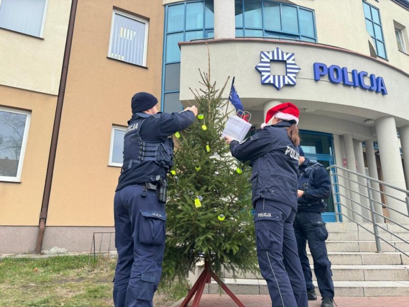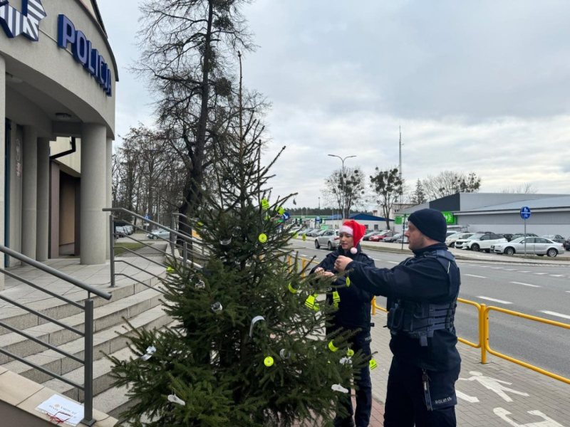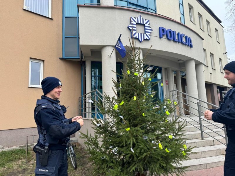 W Wigilię Bożego Narodzenia przed Komendą Powiatową Policji w Szczytnie stanęła nietypowa choinka. Zamiast tradycyjnych bombek i lampek drzewko ozdobiono odblaskami. Policjanci zachęcają mieszkańców i osoby odwiedzające miasto do zdjęcia ozdób i noszenia ich w widocznym miejscu. Celem akcji jest zwiększenie bezpieczeństwa pieszych na drogach, szczególnie w okresie jesienno-zimowym.