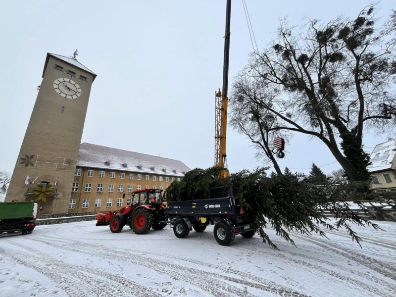 Choinka dziś zajechała i dziś jest montowana. Ma być przyozdobiona świątecznymi ozdobami. Ozdoby pojawiają się też w różnych częściach miasta. To oznacza, że święta coraz bliżej.