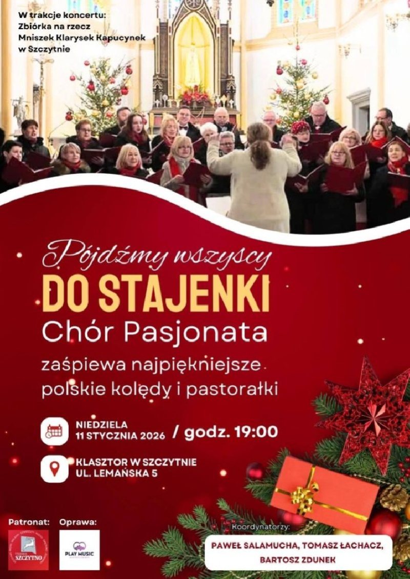 Kolęda wraca tu do źródła. W niedzielę, 11 stycznia 2026 roku o godz. 19.00 w klasztorze Mniszek Klarysek Kapucynek w Szczytnie przy ul. Lemańskiej 5 wystąpi Chór Pasjonata. W programie – polskie kolędy i pastorałki, znane z domów, kościołów i dawnych śpiewników.