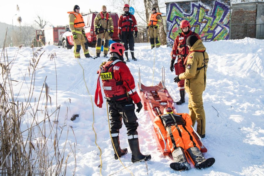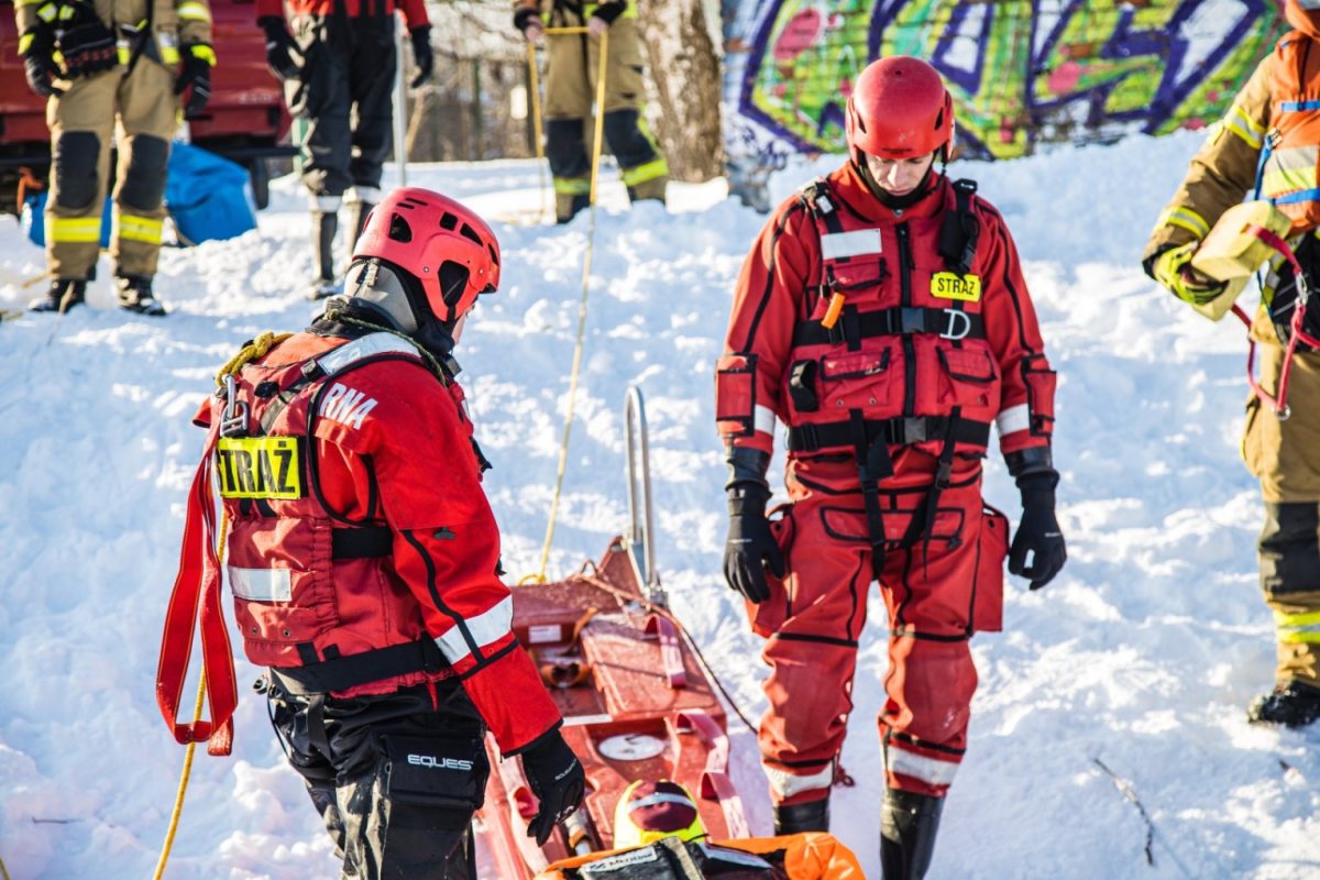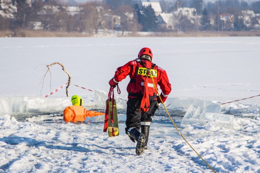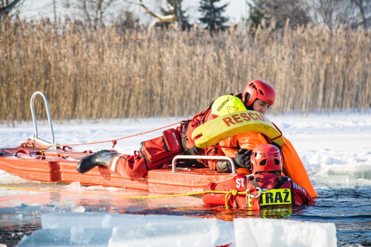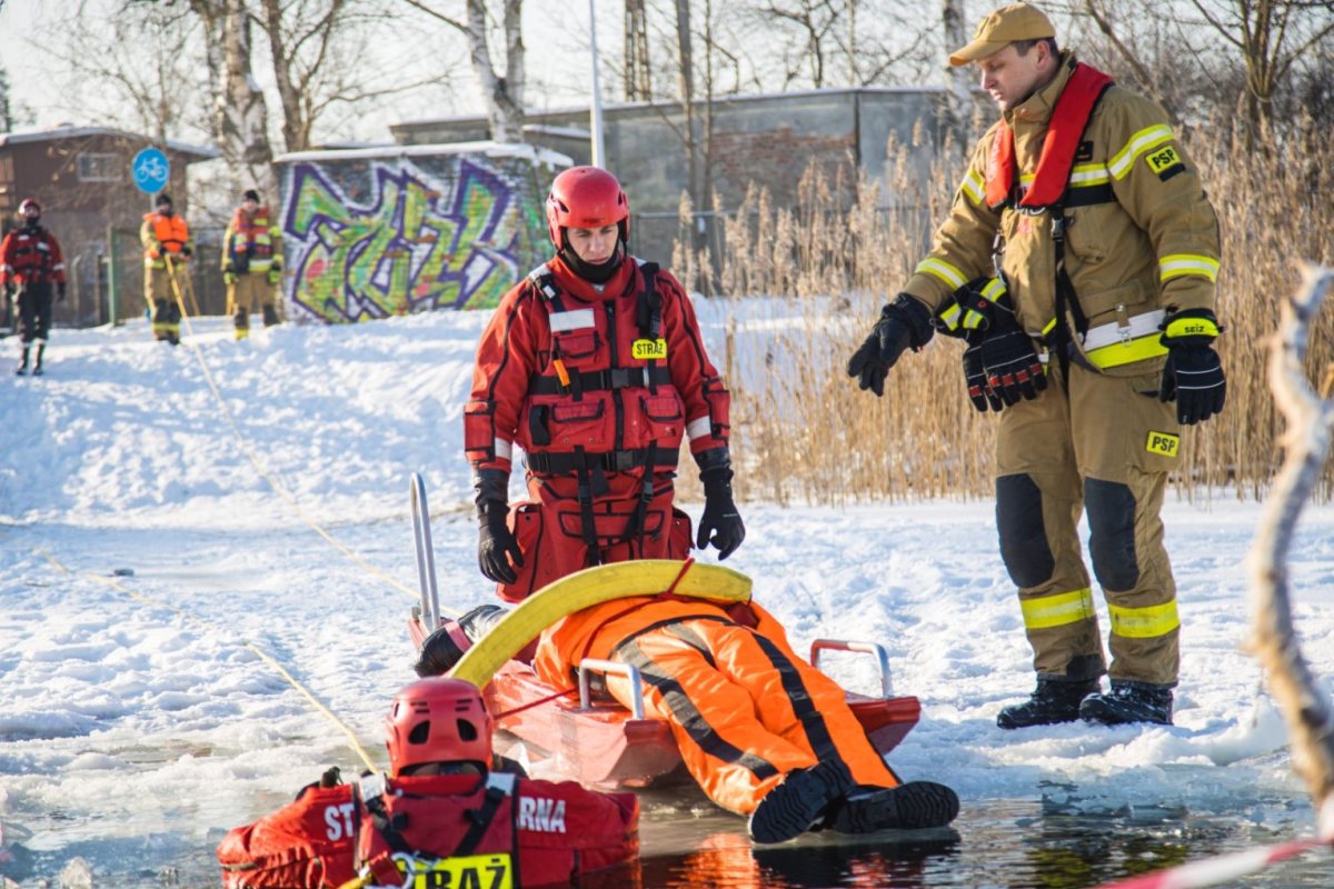 Zimą, gdy zbiorniki wodne pokrywają się warstwą lodu, rośnie ryzyko niebezpiecznych zdarzeń. Załamanie lodu pod osobami spacerującymi czy wędkarzami stanowi jedno z poważniejszych zagrożeń sezonowych. Aby być przygotowanymi na takie sytuacje, strażacy regularnie prowadzą ćwiczenia na zamarzniętych akwenach. Apelują również o rozwagę.