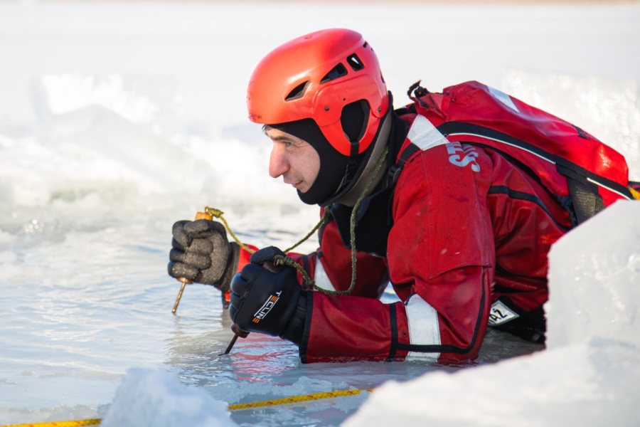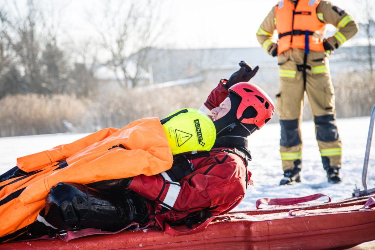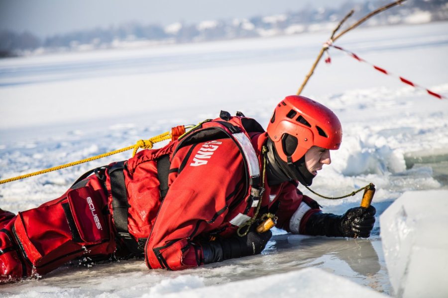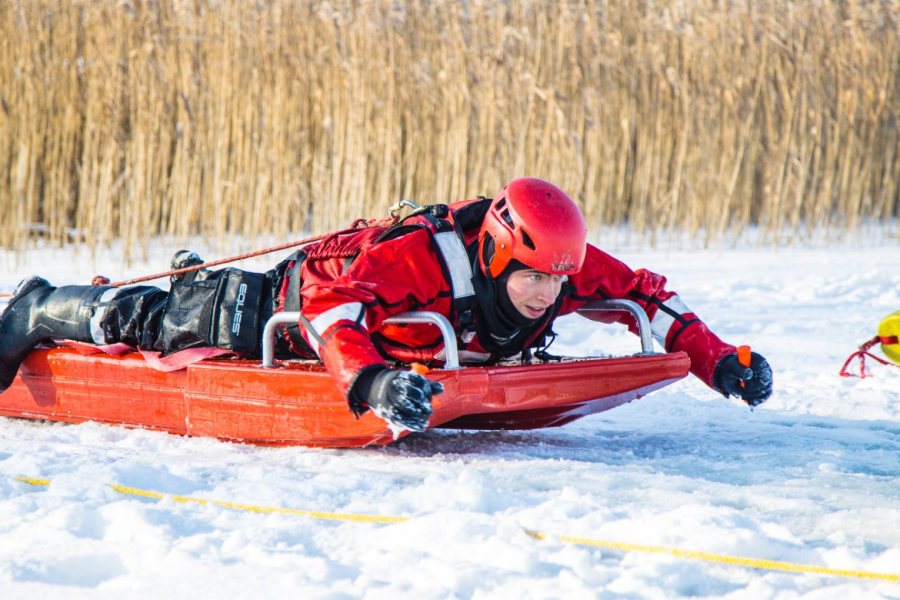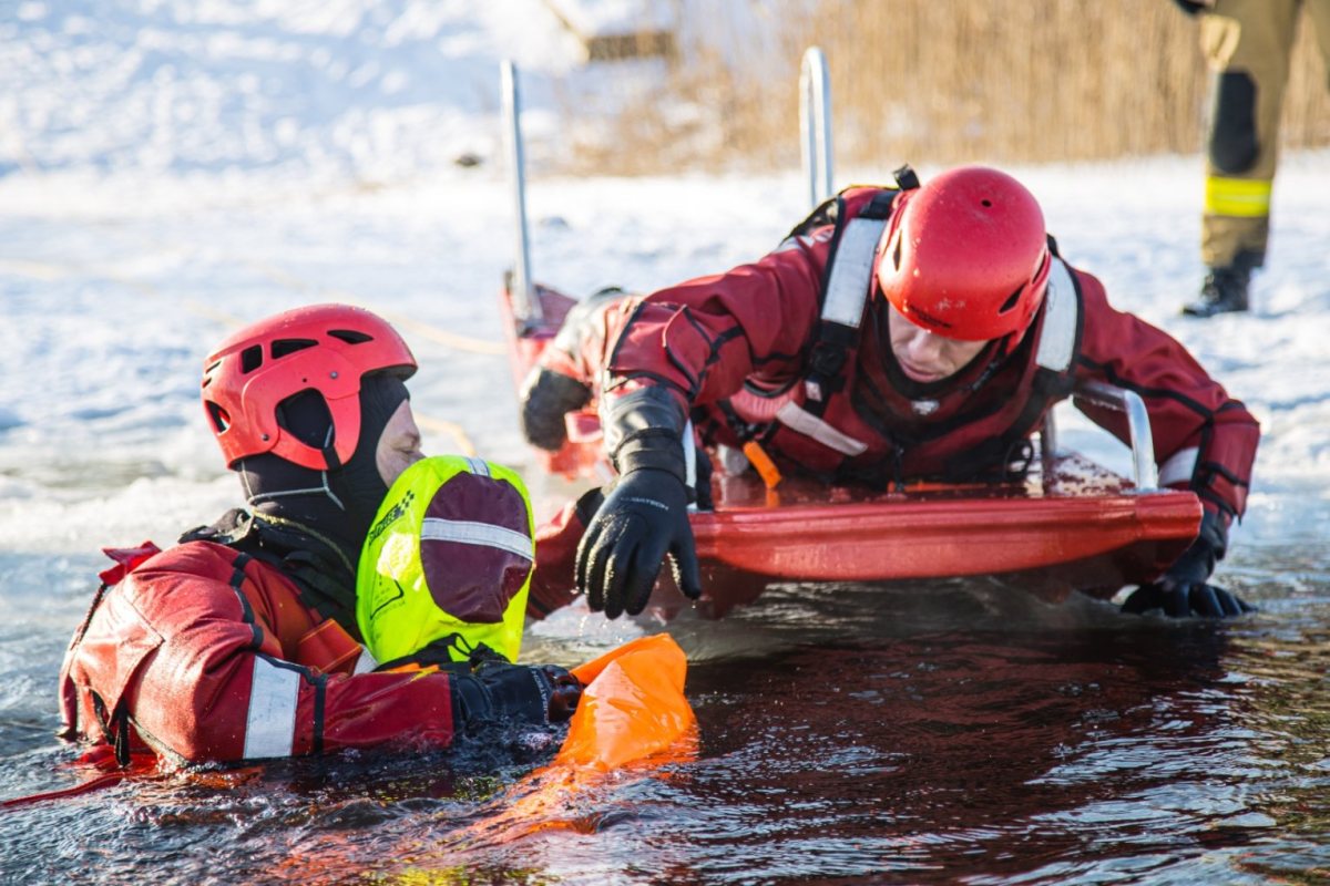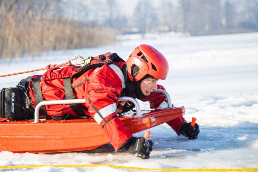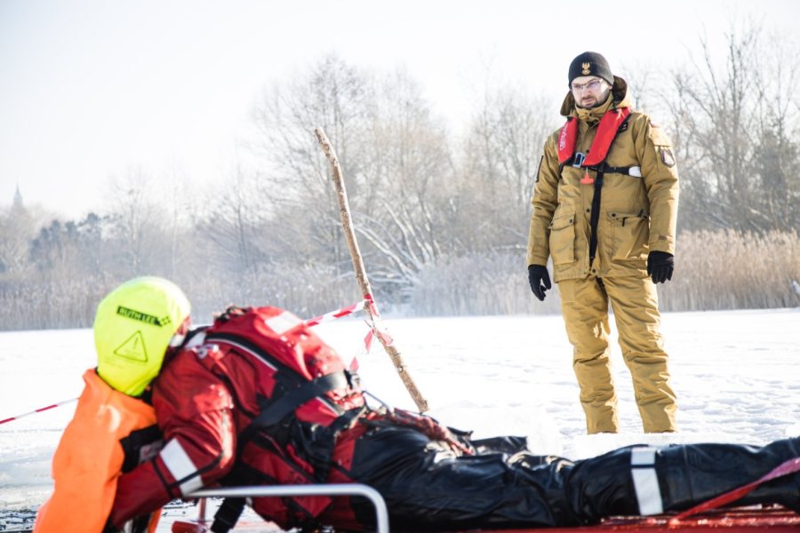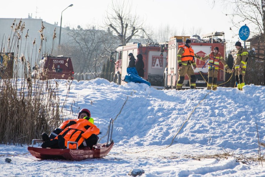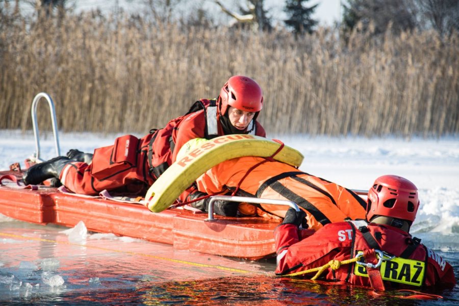 We wtorkowe przedpołudnie strażacy trenowali bezpieczne poruszanie się po jego powierzchni oraz technik dotarcia do osób, pod którymi załamał się lód. Podczas manewrów wykorzystywany jest specjalistyczny sprzęt, m.in.: sanie lodowe, kombinezony wypornościowe czy liny ratownicze. Strażacy doskonalą także metody ewakuacji poszkodowanych z przerębli oraz udzielania pierwszej pomocy osobom wychłodzonym.