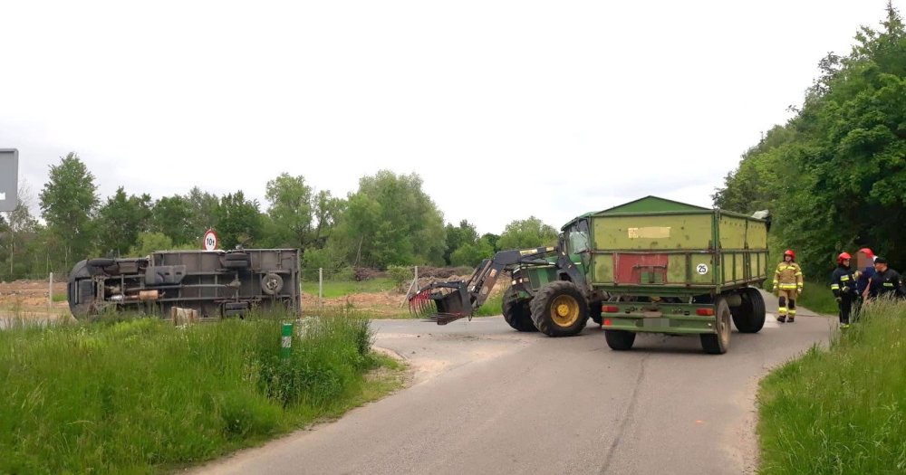 Ciężarówka zderzyła się z ciągnikiem rolniczym w okolicach Leśnego Dworu. Pojazdy całkowicie zablokowały lokalne skrzyżowanie. Na szczęście nikt nie ucierpiał.