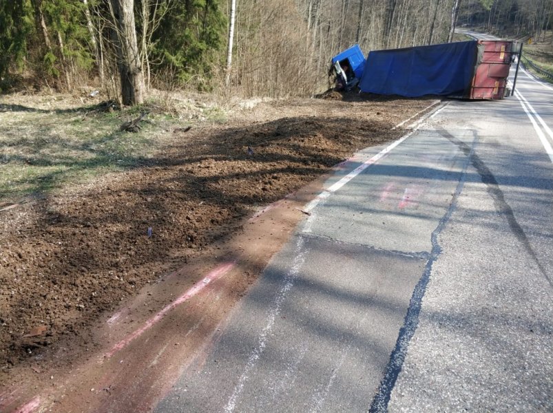 Po godz. 12 (poniedziałek, 8 kwietnia) na trasie Babięta – Marksewo doszło do wypadku z udziałem ciężarówki. Auto wypadło z drogi, przewróciło się i zatrzymało w rowie. Na szczęście 39-letniemu kierowcy ze Szczytna nic się nie stało.