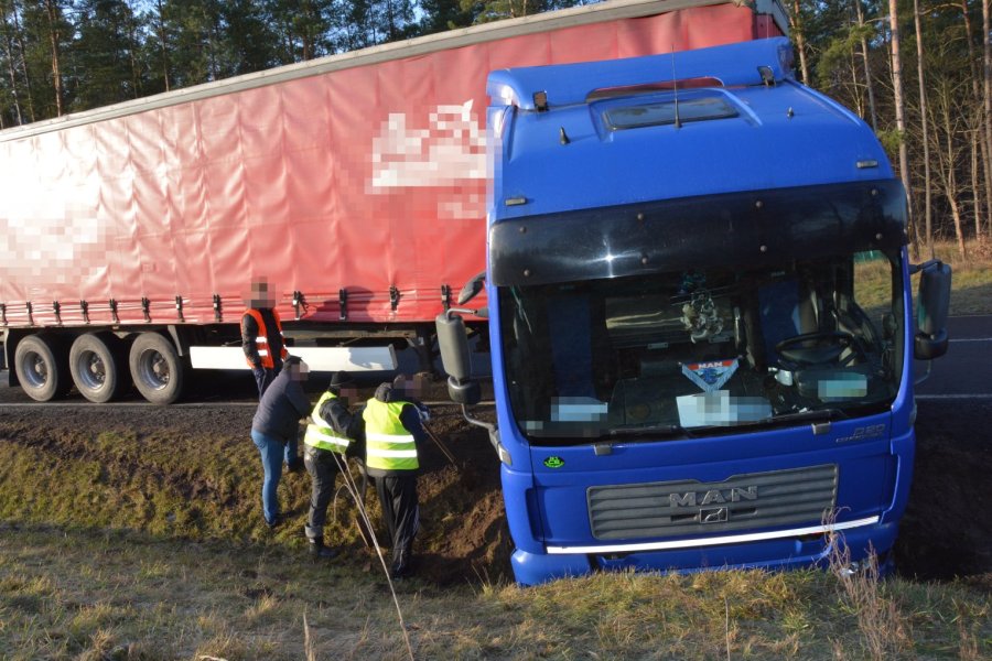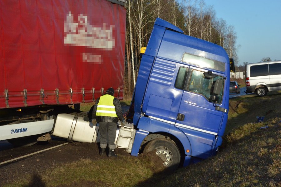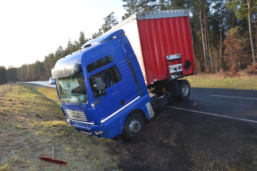 Do zdarzenia doszło po godz. 6 rano – mówi Izabela Cyganiu ze szczycieńskiej policji. - Ciężarówka, jadąca w kierunku Olsztyna, wpadła w poślizg i wjechała do rowu. Na szczęście nikt nie ucierpiał. Ruch na drodze odbywa się wahadłowo. Kierowca samochodu ciężarowego był trzeźwy.