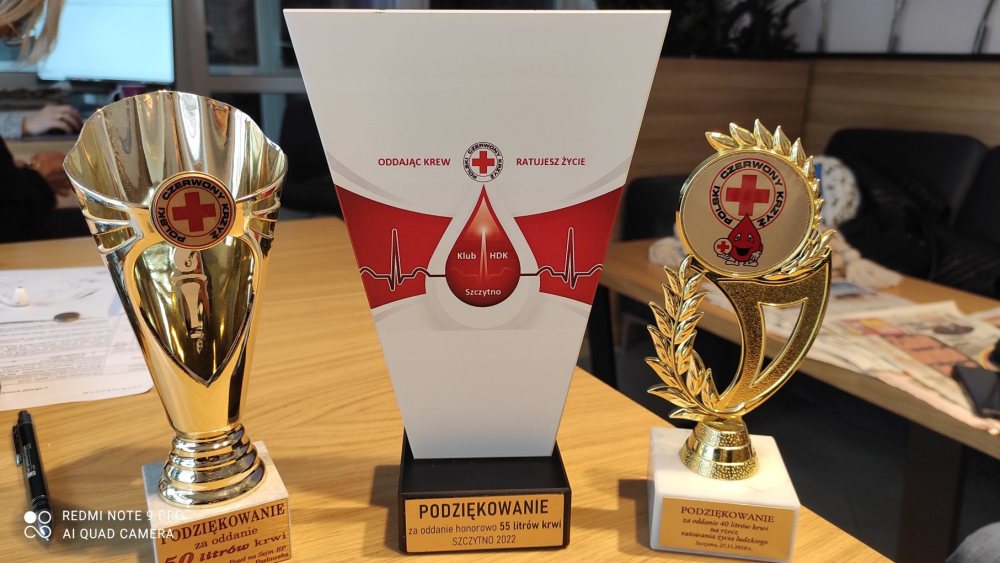 Co jakiś czas rodzimy klub HDK nagradza go statuetką za kolejne 5 litrów. Na ostatniej, którą otrzymał podczas tegorocznej gali krwiodawców (o tym na stronie obok) widnieje cyfra 55. To już właściwie prawie nieaktualne. Jeszcze w tym roku na jego krwiodawczym koncie zapisze się tyle litrów krwi ile ma lat czyli 60.