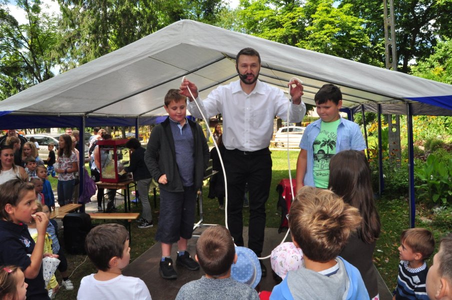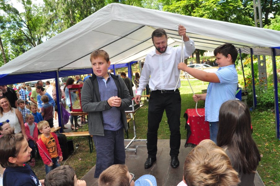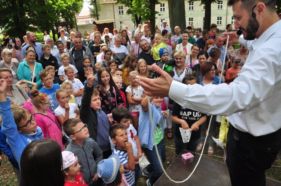 To żadna magia, a triki, sztuczki, który każdy z was może się właściwie nauczyć – zastrzegł przed swoim występem sztukmistrz. Co odważniejsi młodzi ludzie mogli spróbować swych sił w prezentowanych przez czarodzieja sztuczkach. Co dostarczyło uczestnikom pikniku jeszcze więcej radości.