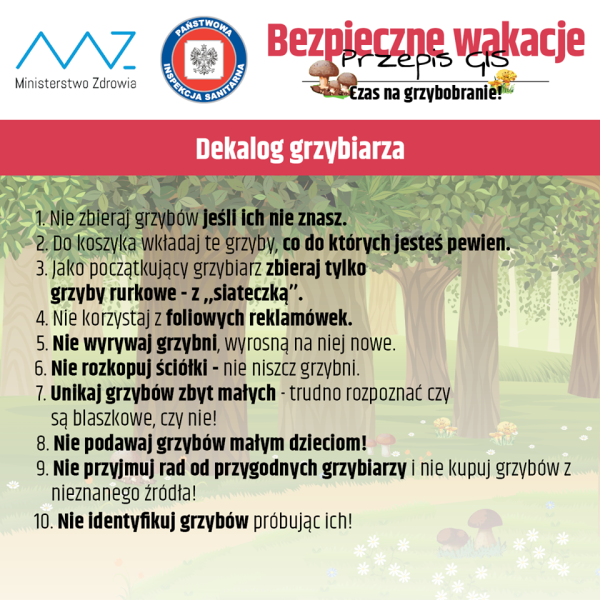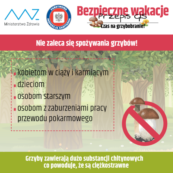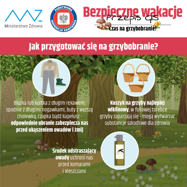 W ramach kampanii BEZPIECZNIE WAKACJE – PRZEPIS GIS Główny Inspektor Sanitarny radzi jak przygotować się na grzybobranie. Główną przyczyną zatrucia grzybami jest niewłaściwe rozpoznanie jadalnych i trujących grzybów. Grzybobranie to nasz ulubiony „sport narodowy”. Ale bywa ryzykowny. Sprawdź jak przygotować się do wyjścia na grzyby, poznaj kalendarz grzybiarza...