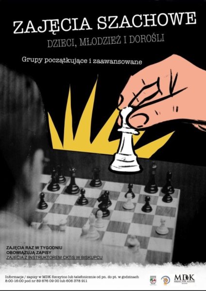 Zajęcia będą prowadzone raz w tygodniu przez doświadczonych instruktorów z Klubu Szachowego w Biskupcu. Oferta skierowana jest do dzieci, młodzieży i dorosłych – zarówno początkujących, jak i zaawansowanych. To świetna okazja, by rozpocząć swoją przygodę z szachami lub udoskonalić już zdobyte umiejętności.