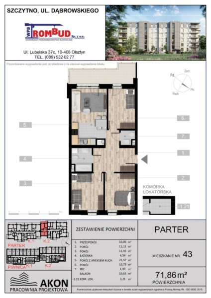 Zapraszamy do naszego biura sprzedaży, które znajduje się na terenie inwestycji przy ul. Dąbrowskiego (wjazd od ulicy Przemysłowej).