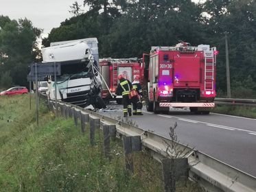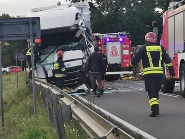 Według wstępnych ustaleń policji kierowcy obu ciężarówek są ranni. Obaj trafili do szpitala. Jeden był zakleszczany w pojeździe. Interweniowali strażacy, którzy przy pomocy sprzętu ratownictwa drogowego wyciągnęli go z pojazdu.