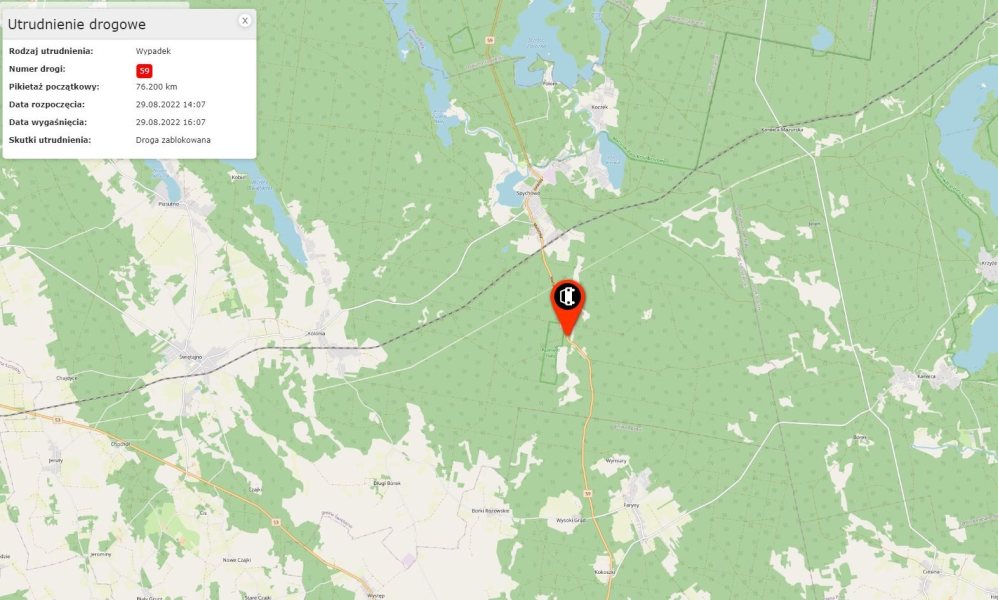 Kilka minut przed 13:00 na drodze krajowej nr 59 (Spychowo-Rozogi) doszło do czołowego zderzenia dwóch samochodów osobowych. Ranne zostały cztery osoby. Na czas działań służb ratunkowych droga jest całkowicie zablokowana.