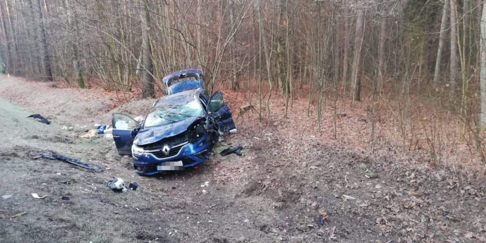 Do groźnego wypadku doszło dziś rano w okolicach Siódmaka na trasie Szczytno – Wielbark. Roztrzaskały się tam osobowe volvo i renault.