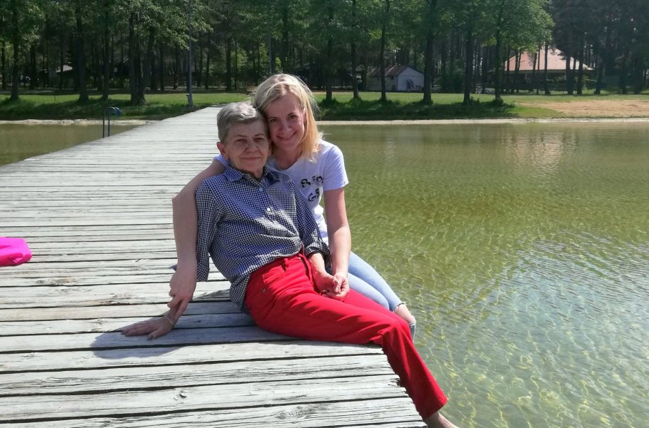 Starsza, Kasia, mieszka w Olsztynie, a w Jedwabnie młodsza – Weronika, ale nie ze mną. Obie córki mają po dwie córki, czyli obdarzyły mnie w sumie czterema wnuczkami. I teraz familia składa się z samych kobiet w różnym wieku. Ja mam własne mieszkanie i żyję według własnego motta: „Robię, co chcę i kiedy chcę”. Ze trzy lata temu w Chorzelach na straganie zauważyłam koszulkę z takim napisem i teraz jest to mój strój „sztandarowy”. Hasło zresztą też.